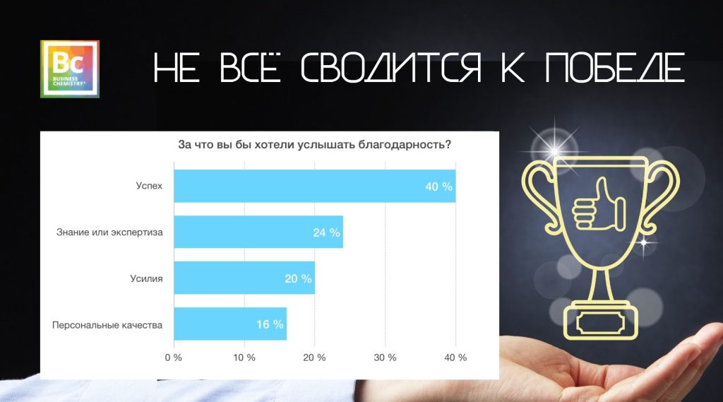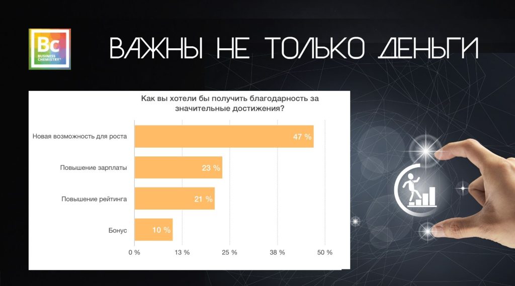 Бизнес-химия помогает лидерам, менеджерам и профессионалам на всех уровнях понять индивидуальные предпочтения сотрудников в вопросах признания, а это, в свою очередь, в будущем позволит организациям использовать не только вознаграждение для выстраивания взаимоотношений со своими сотрудниками.