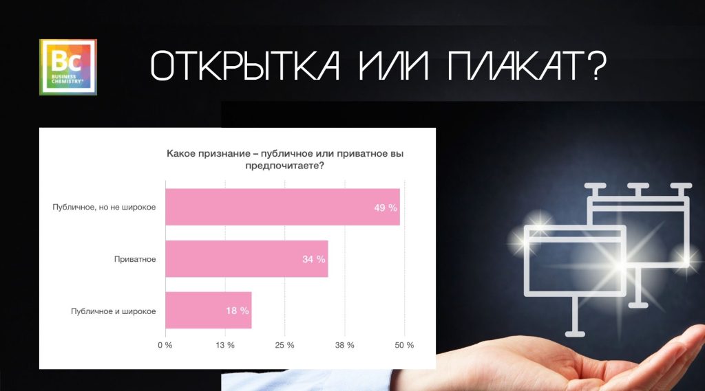 1. Все практически единогласно признают важность признания заслуг коллег и других людей, существует разница в том «как» люди хотят получить признание, «за что» и «от кого».