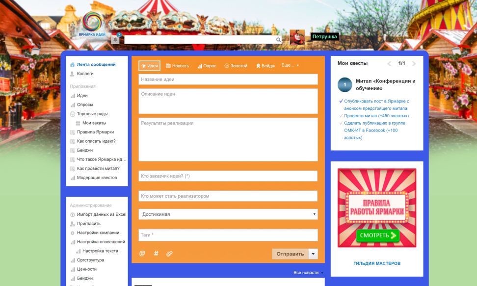 Еще одна из программ сейчас тоже задействует «Ярмарку». Это проект из области внутреннего развития и управления знаниями. Наши сотрудники часто принимают участие в различного рода конференциях, форумах, ездят на обучение, улучшают свои профессиональные знания. Чтобы у них был интерес делиться новой информацией с коллегами, мы запустили в системе квесты. Каждый участник обучения или конференции проводит митап, а шаги по его организации и результатам отмечает в виде квеста, получая за это дополнительные баллы и золотые в «Ярмарке». Так мы даем людям дополнительную мотивацию проводить такие встречи, делиться знаниями. У нас формируется рейтинг тех, кто делает это активнее.