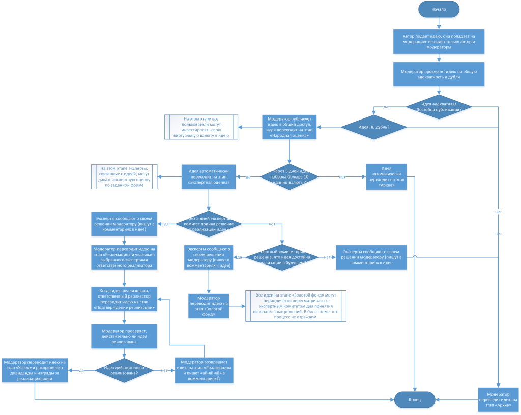 Блок-схема процесса продвижения идеи по воронке тоже может быть достаточно проста.