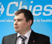 На вопросы отвечал Павел Карасев, руководитель отдела информационных технологий «Chiesi Pharmaceuticals»