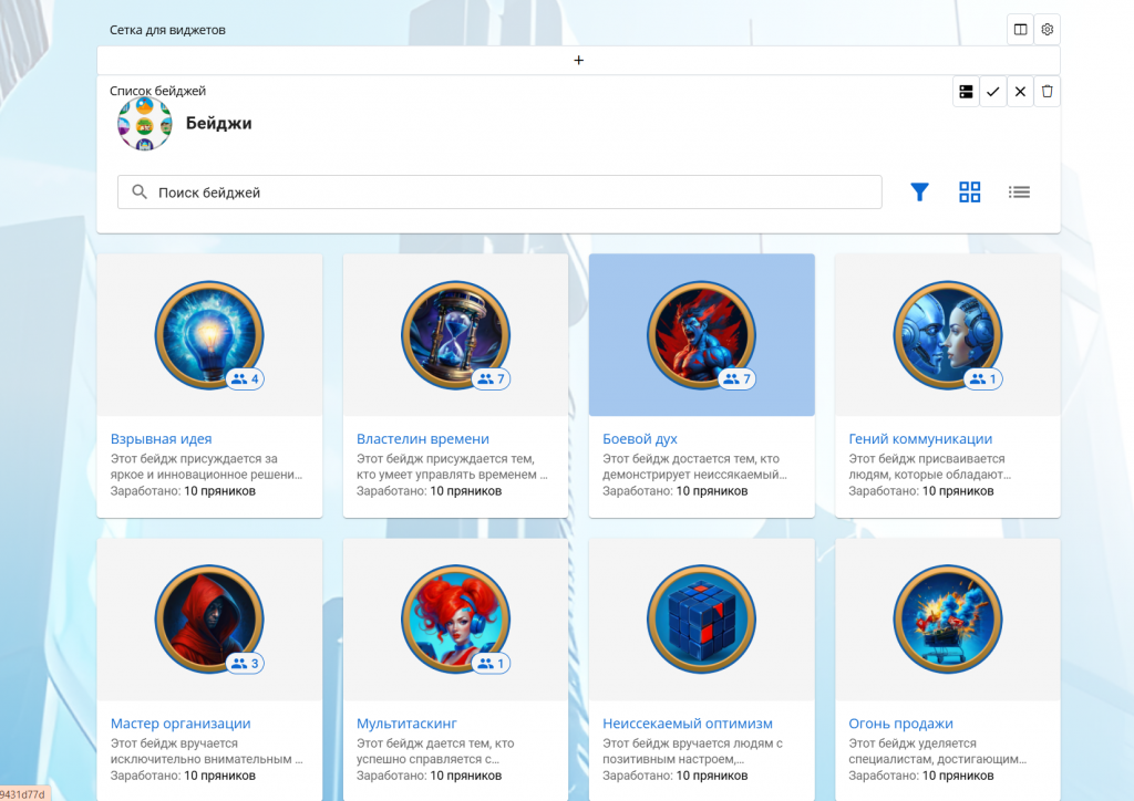 Когда необходимо поменять порядок отображения бейджей/категорий бейджей на странице со списком всех бейджей, можно воспользоваться настройками сортировки внутри виджета.