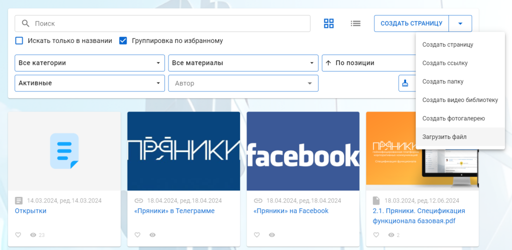 Раньше массовая загрузка файлов в папки базы знаний осуществлялась только через drug-n-drop, теперь мы добавили привычную массовую загрузку из проводника. Нажимаем «Загрузить файл», выбираем в проводнике один или несколько файлов — и они грузятся в базу знаний.