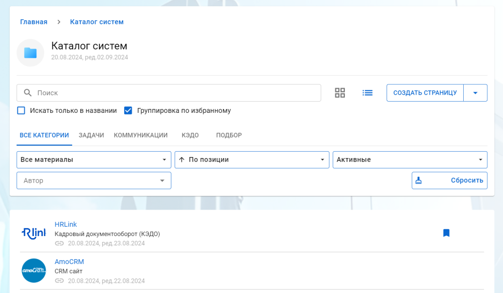 Виджет «Актуальный контент по теме» теперь умеет работать не только с вики-страницами, но и с любыми другими объектами базы знаний. Вы можете вывести на главную страницу (или в тематический раздел) виджет с самыми актуальными документами, фото и видео дня и т.п. А также появилась возможность выставлять описание папкам. Это нужно и для того, чтобы использовать его в виджете «Актуальный контент по теме», и управлять составом полей, выводимых в виджет: использовать ли название, выводить ли описание к объектам, скрывать ли виджет, если в нем нет данных.