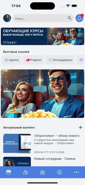 Мы в Пряниках долго смотрели на это — и решили, что пора это менять. Пряники давно стали модульным корпоративным порталом и мобильное приложение должно было уметь то же самое.